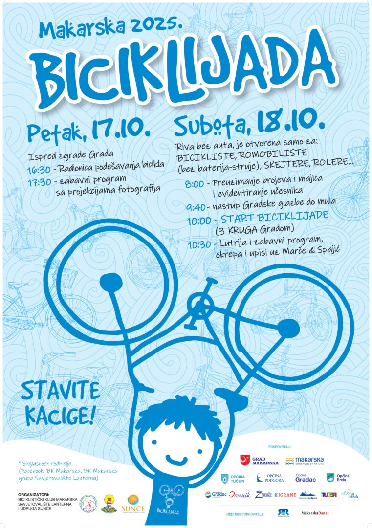 Pozivamo vas da budete dio uzbudljive Biciklijade u Makarskoj! Povedite obitelj i prijatelje te uživajte u danu ispunjenom zabavom, zdravljem i zajedništvom. Prijavite se i podijelite ovaj događaj s vašim najdražima!