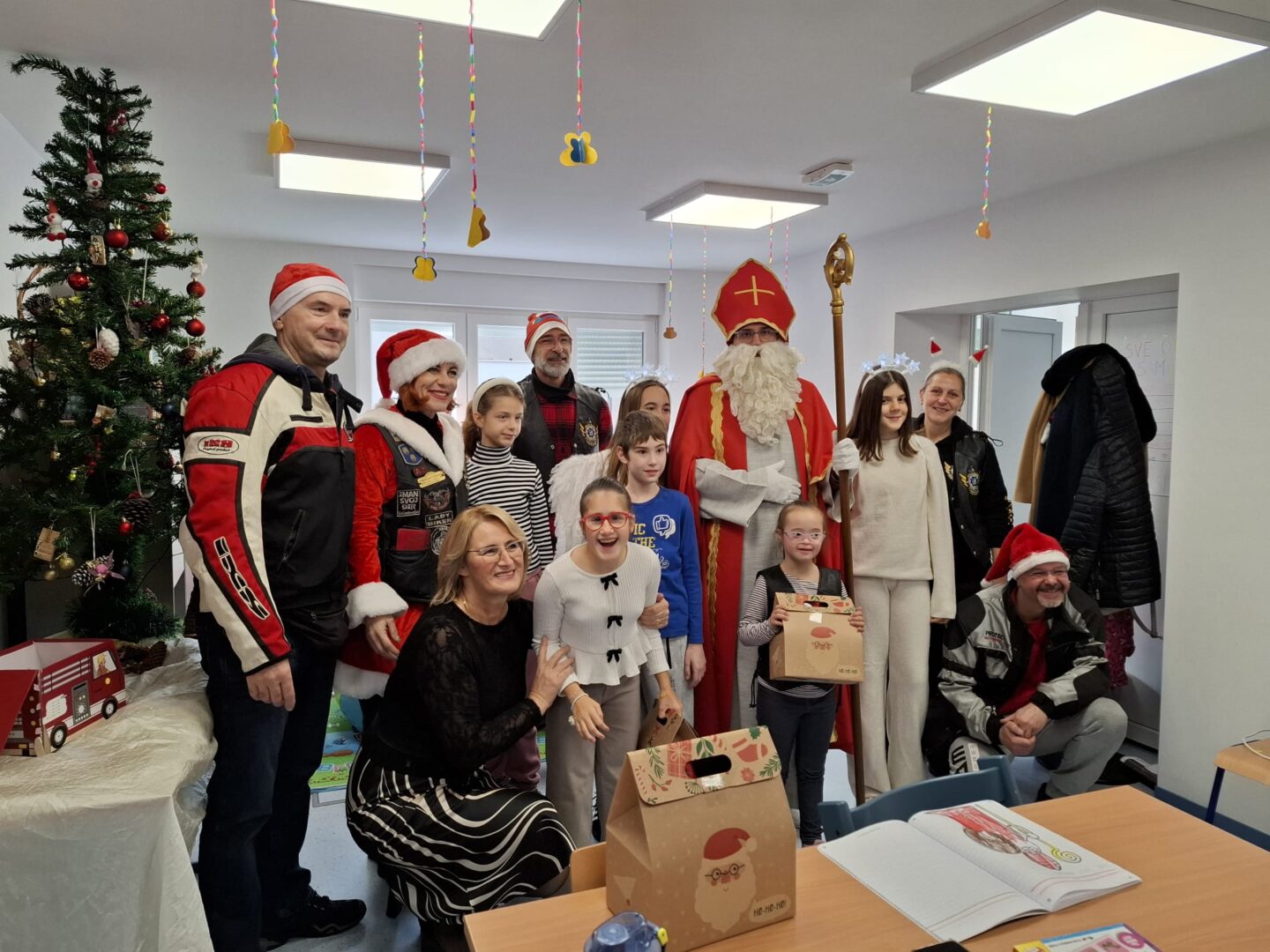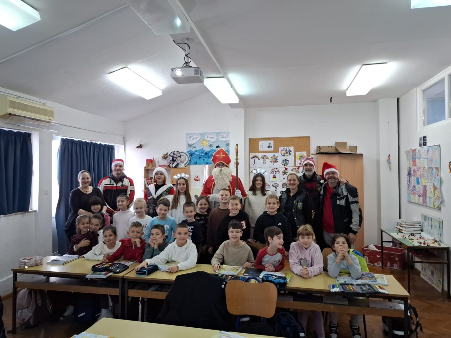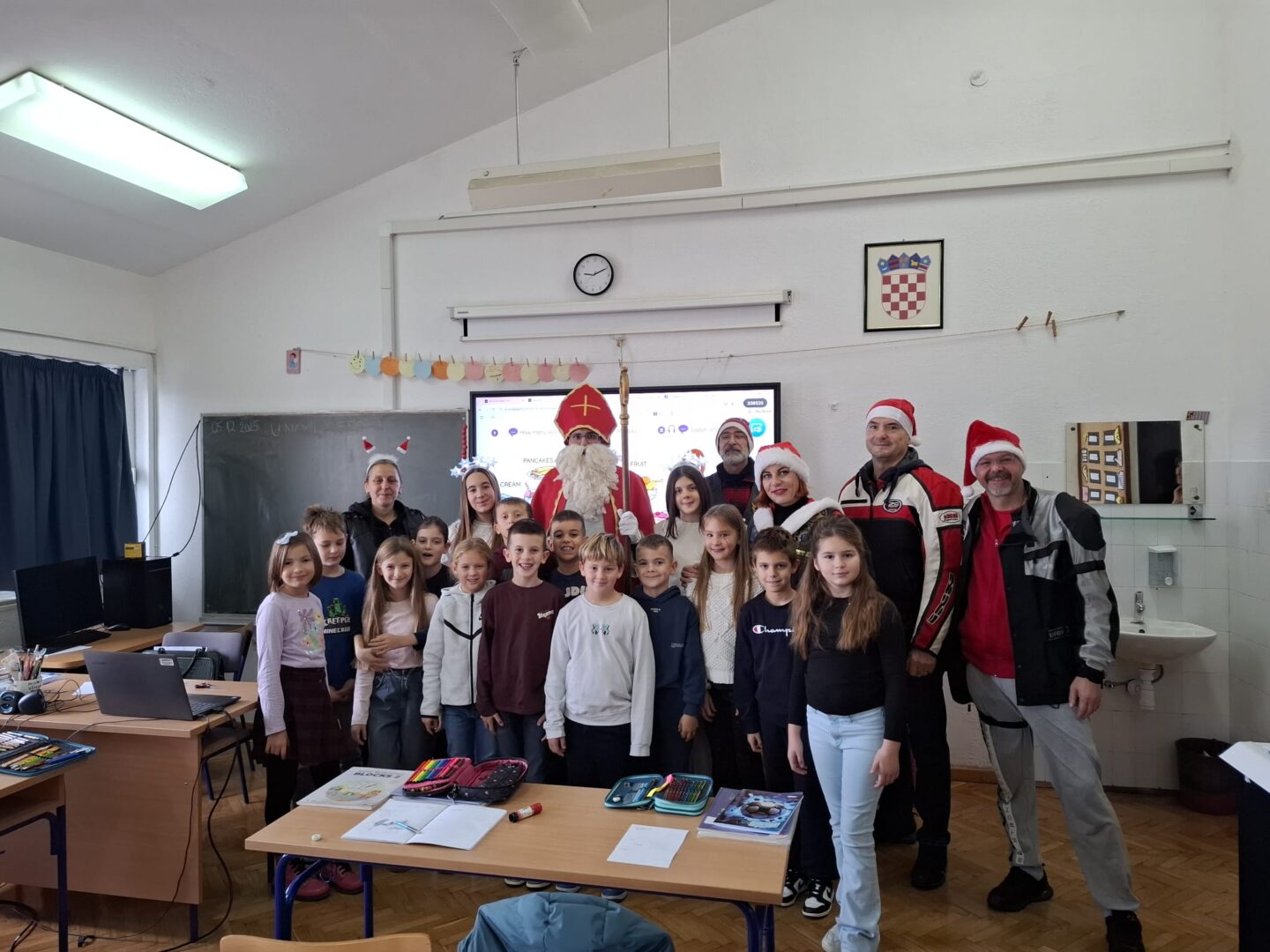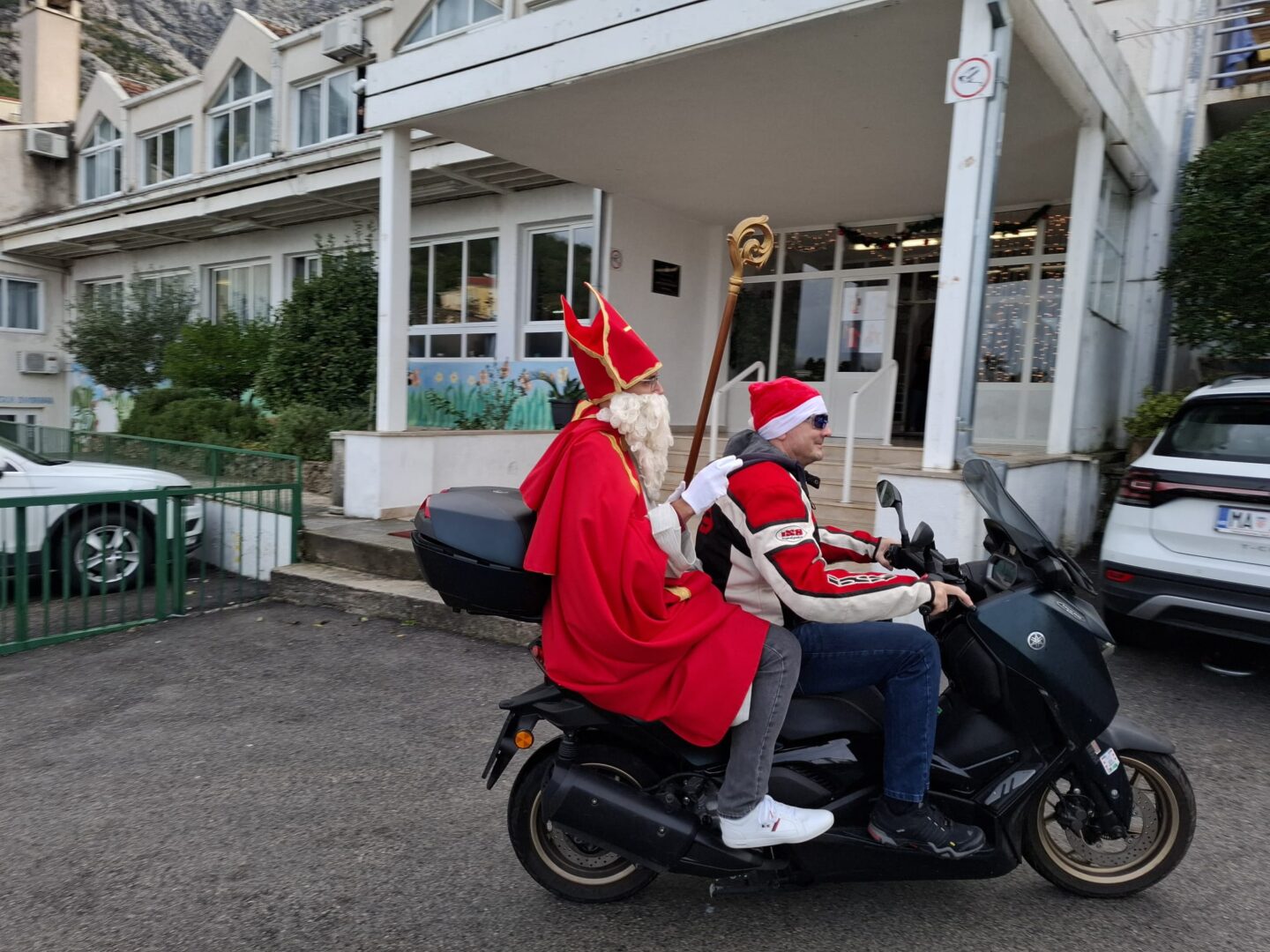 Danas je sveti Nikola došao u našu školu, ali ovaj put na motoru! Razbarušene brade, donio je osmijehe na lica svih prisutnih. S darovima u rukama, spreman podijeliti radost i sreću među djecom.