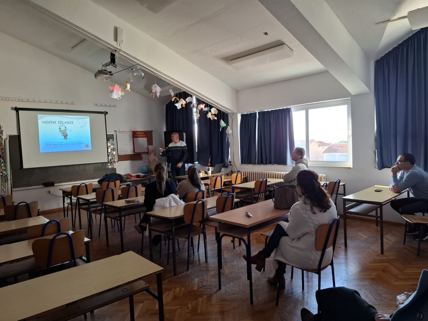 Istoga dana organizirano je i predavanje za roditelje učenika viših razreda, na kojem se govorilo o rizičnim ponašanjima djece i mladih (alkohol, droge, klađenje, društvene mreže), s posebnim naglaskom na problem vršnjačkog nasilja. Gospodin Radoja kroz neposredan razgovor s prisutnim roditeljima, koristeći se iskustvima i primjerima iz svakodnevne prakse, upoznao je roditelje s opasnostima i rizicima suvremenog društva s kojima se suočavaju i djeca i roditelji. Posebno je istaknuo potrebu za većom odgovornošću i nadzorom ponašanja djece, uz naglasak na stalnu i kvalitetnu komunikaciju. Predavanje je zaključio konstatacijom da je dobra i kontinuirana komunikacija najbolja prevencija svih oblika rizičnih ponašanja.