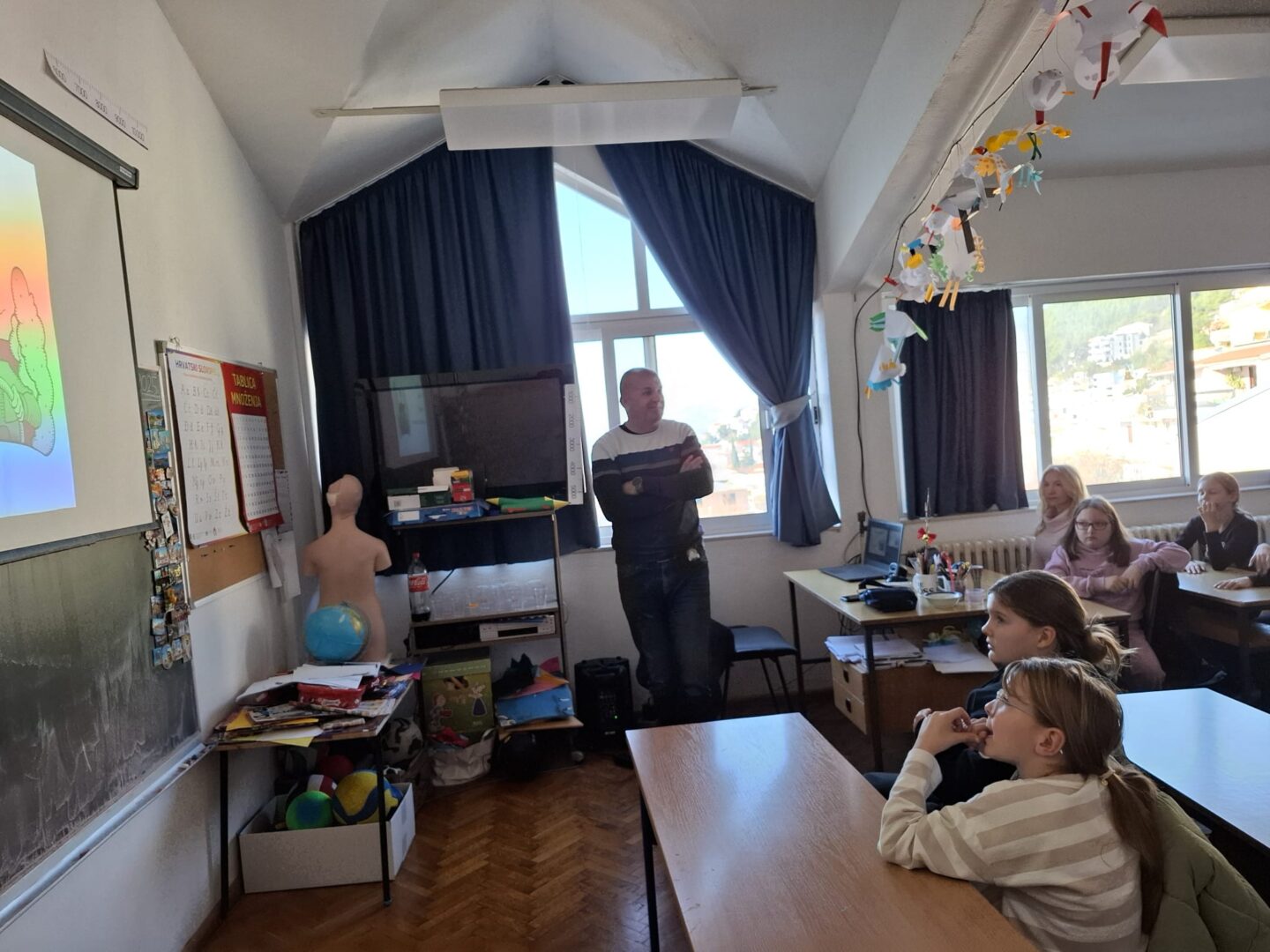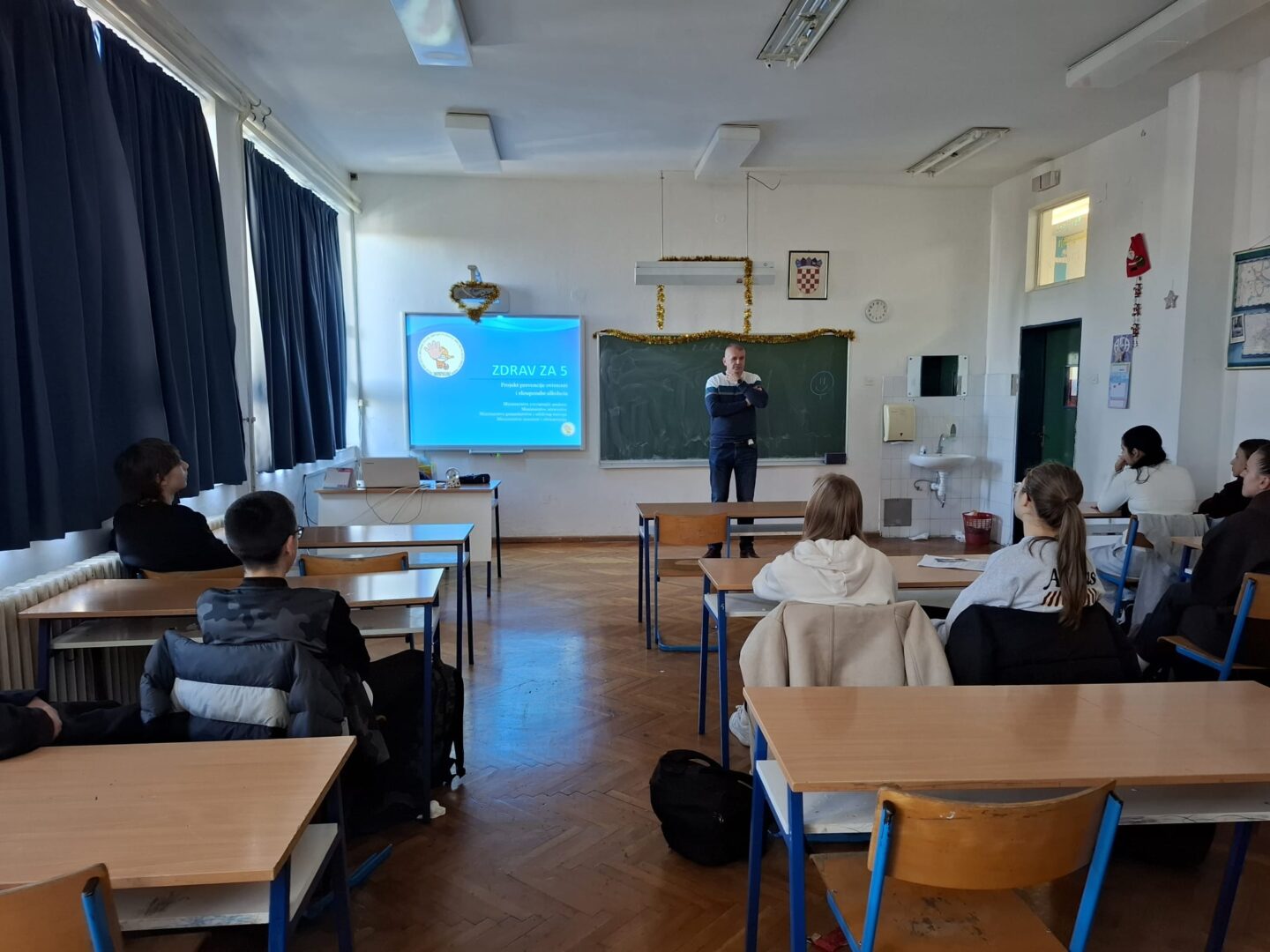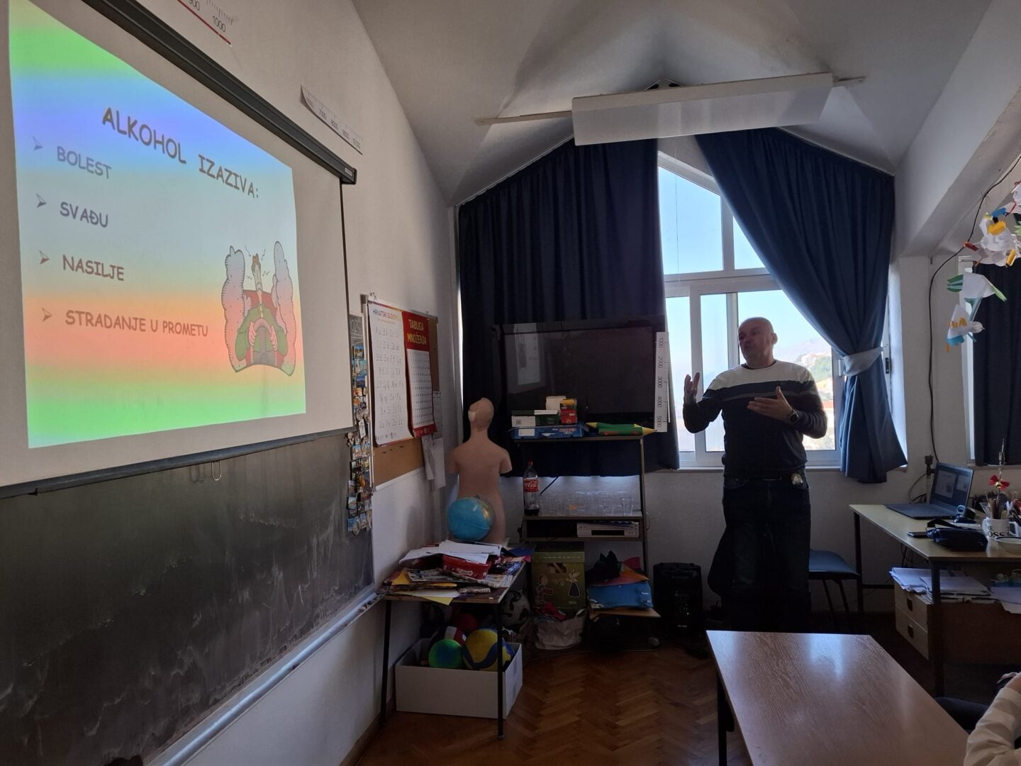 U ponedjeljak, 15. prosinca, gospodin Radoja održao je predavanje učenicima 4. razreda u sklopu projekta MAH-1 (Mogu ako hoću), u kojem je govorio o prevenciji rizičnih ponašanja. S učenicima 8. razreda obradio je temu „Alkohol i mladi“, također u okviru projekta „Zdrav za 5“.