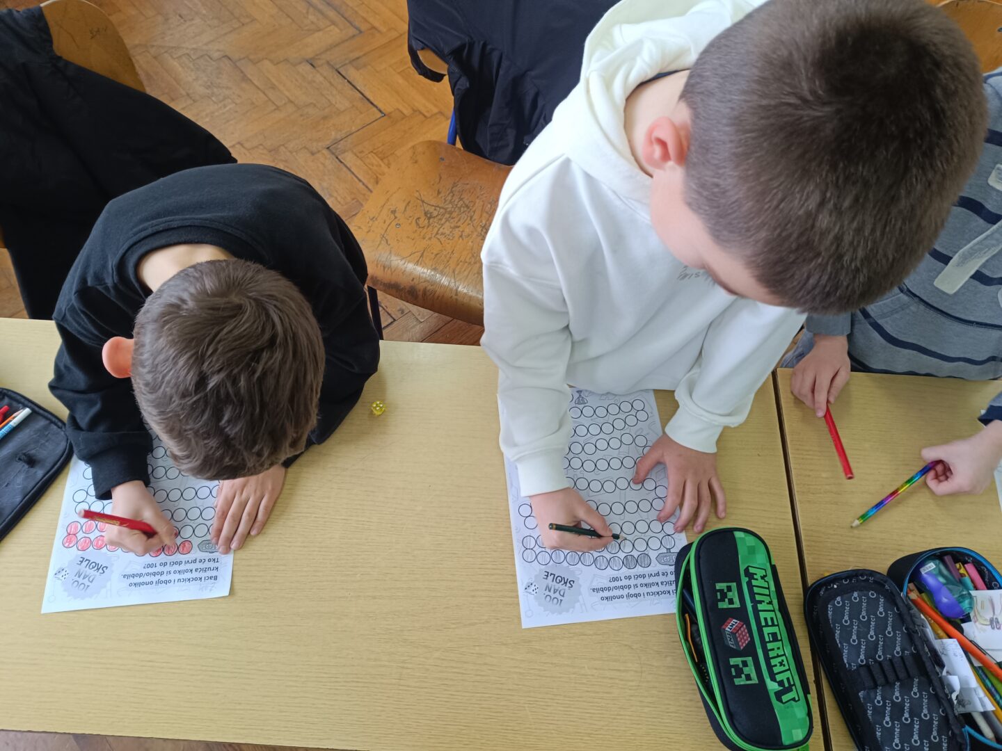 Drugašići su sa svojom učiteljicom Antoniom Tadić spojili umjetnost i znanost: ukrašavali su broj 100 u stilu Vasilija Kandinskog na satu likovne kulture, rješavali matematičke mozgalice s rezultatom 100, a tijelima su u dvorani oblikovali veliku brojku 100 nakon što su odradili 100 pripremih vježbi. Na satu hrvatskog jezika su prevodili 100 mjesnih riječi na hrvatski standardni jezik.