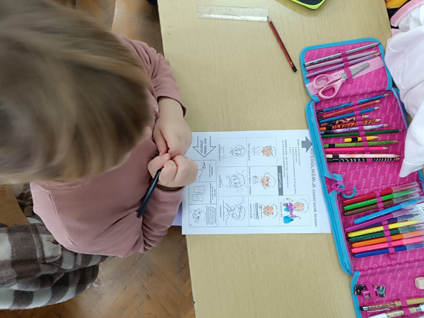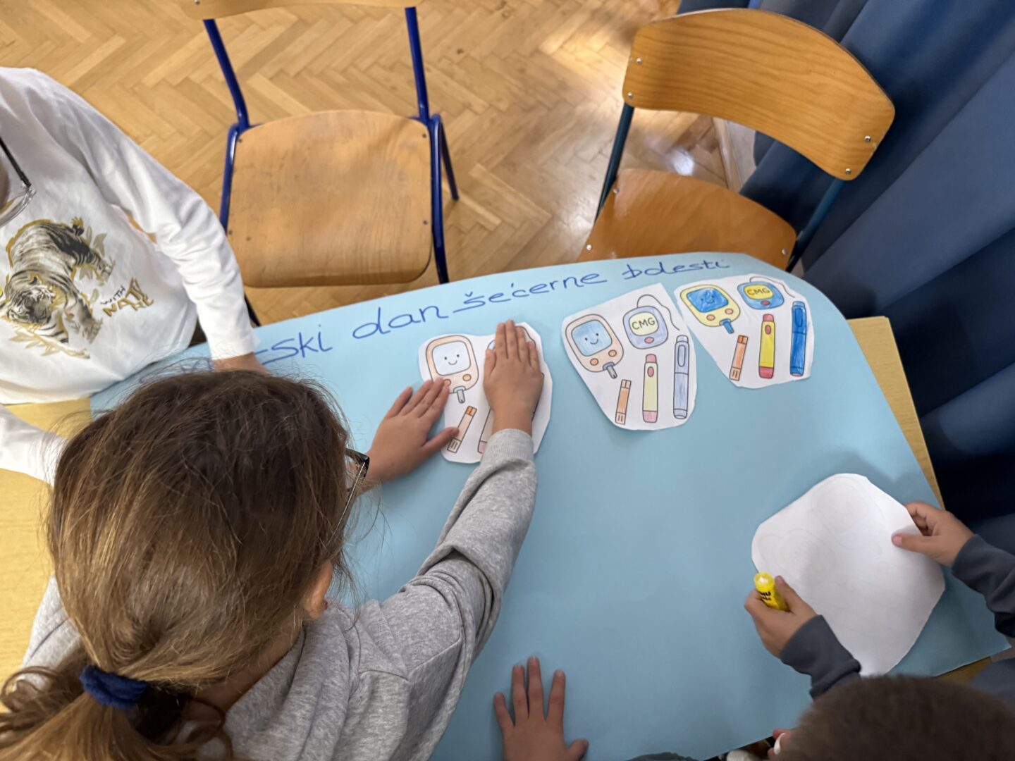 Učenici su bojili bojanke i uređivali pano kako bi podržali svijest o dijabetesu.